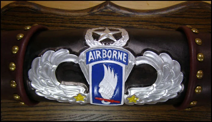 Trophy built for the 173d Airborne Brigade Combat Teams annual running of the herd competition. The competition is to see which team can run the farthest in 24 hours. Each year the winners names will be engraved on a plaque under the horns.