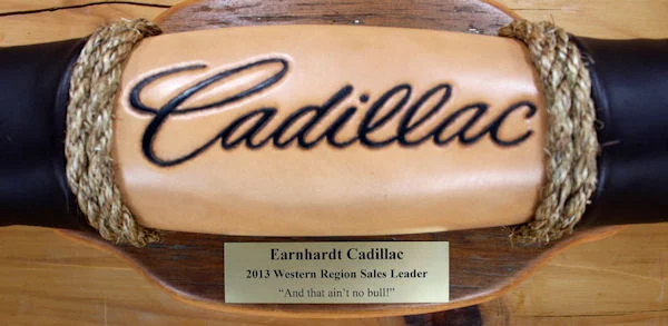 Earnhardt Cadillac had both leather tooling and an engraved plate added to commemorate their accomplishments.